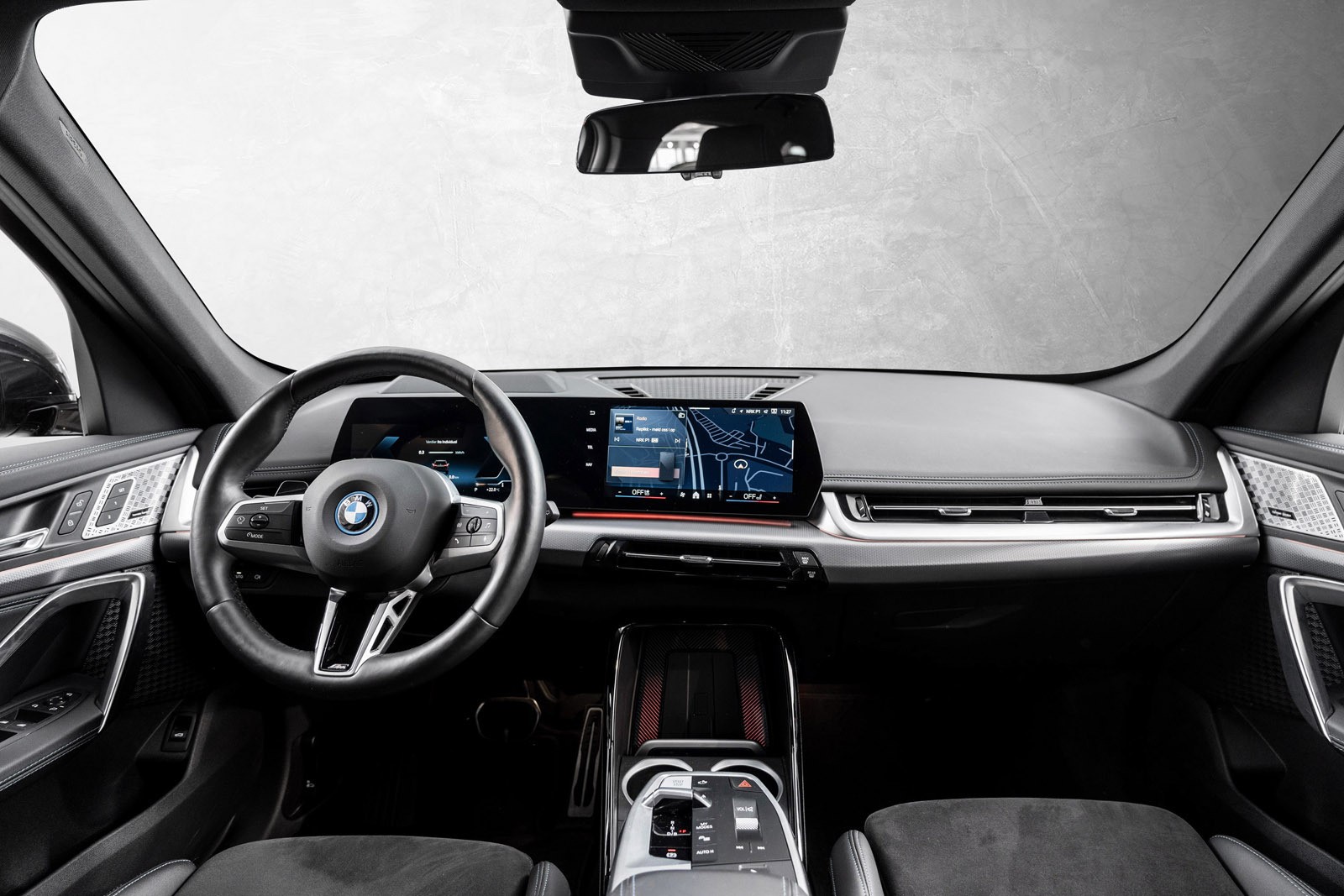 Flott BMW iX1 med den riktige farge- og utstyrskombinasjonen. BMW iX1 er stor nok for hele familien, men akkurat passe kompakt til å egne seg godt i urbane områder. Bilen egner seg dermed til alt fra bykjøring til fjellturer.